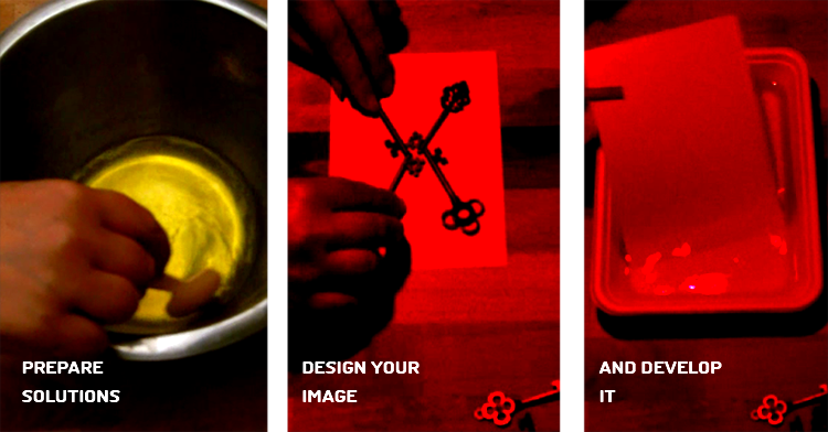 With Ana's Photographic Cooking Kit™ you develop unique one-of-a-kind shadow-print images according to the common darkroom process using kitchen ingredients such as soda, vitamin C, vinegar and salt. It is based on Anatype™ - a chemical-free photographic process invented by DaQot. This method is environmentally friendly.